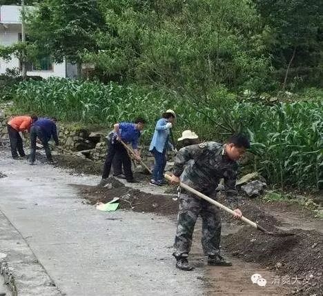 干部群众疏通受阻道路